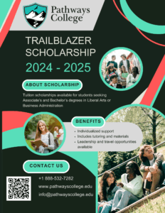 Tuition scholarships available for students seeking Associate's and Bachelor's degrees in Liberal Arts or Business Administration